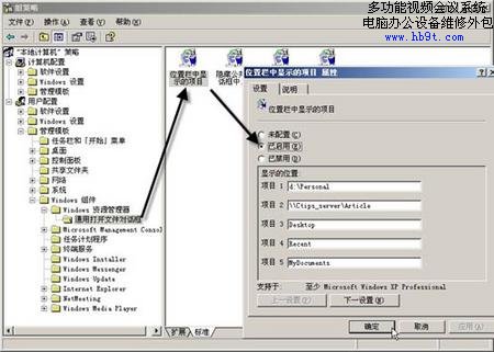 第二步:右擊“位置欄中顯示的項(xiàng)目”選擇“屬性”,打開(如圖3)所示的對(duì)話框,選中其中的“已啟用”項(xiàng),則對(duì)話框“顯示的位置”下的“項(xiàng)目1”、“項(xiàng)目2”等五個(gè)輸入框被激活,按照以下原則修改位置欄中的項(xiàng)目。